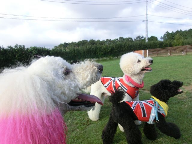 「興奮」を落とすには、音でも指示でも、そのコにあった方法があります。キューティーとシードは、「反応」で興奮します。スピンクの大はしゃぎを止められたら、案外、問題はなくなりました。多頭飼いの場合は、「興奮」のきっかけを作ってるコが一体誰なのかを見極めるのも大事ですね。