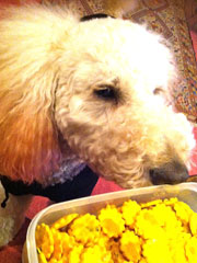人間用の粉チーズでは塩分が強すぎるので、ペット用のふりかけなど、塩分の少ないものを使ってください。 |