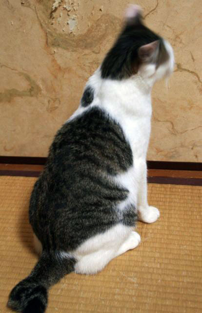 ちょっとビビリですが、攻撃性は全くなく 馴れるとべったり甘えて来ます 鳴き声が可愛らしいです 猫は大好きで、自分から甘えていきます しっぽはカギしっぽに見えますが、 触ると豚のしっぽのように一巻きしています ビビリですので、最初は警戒すると思います 誰にでも愛想のいいタイプではなく、 一対一の関係を求めるタイプですので この子とじっくり向き合ってくださる方を希望します